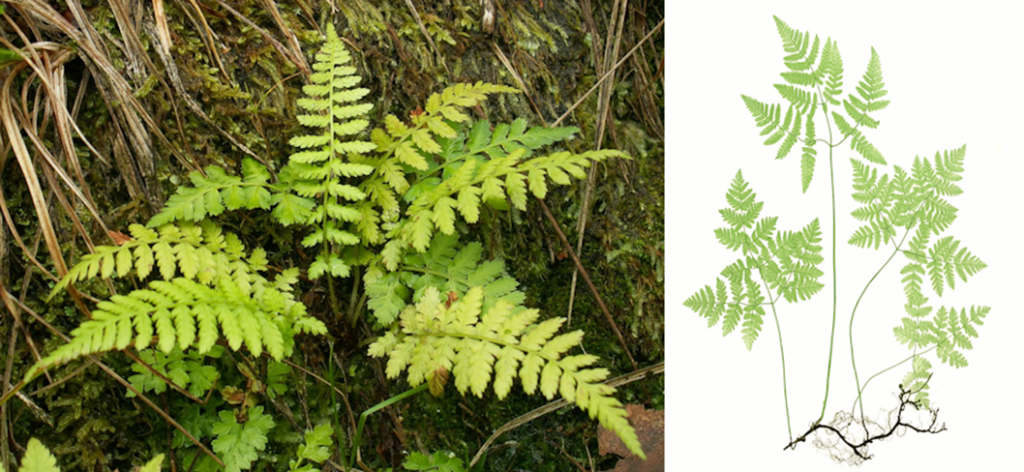 Abb. 1 Cystopteris (hier C. fragilis) und Gymnocarpium (hier G. dryopteris) sind trotz großem evolutionärem Abstand kreuzbar. (Public Domain, Wikimedia)